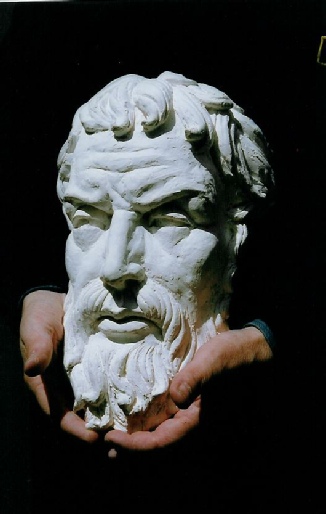 This plaster caste half head, to be wall hung, was made from a mould by artist Katherine Oppel taken from a full bust based on the original in the Vatican museum kindly given to me by an Italian Epicurian, Michele Pinto.
