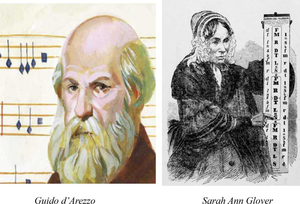 Ut had been the only note starting with a vowel but around 1620 Giovanni Battista Doni took the first two letters of his name, Do, to replace Ut so that this note could also begin with a consonant. Soon after solfa received its seventh note Si formed from the initials Sancta Iohannes (Saint John) to whom in the hymn is dedicated. The last modification in the diagram is that the English music teacher Sarah Ann Glover who around 1820 chose to replace the Mediterranean Si with Ti so as to produce a disctinctive intial. She also made the innovation of using upper case to represent fixed notes (La=440Hz as is still used in the Mediterranean) and lower case for transposable as she demonstrates in the picture below. Italic is useful to avoid the ambiguity of the non-italic l which can easily be confused with the number 1 (depending on the font in use). In ChroSol Si and Ti are blended into Tsi which can sung as si, ti or tsi.